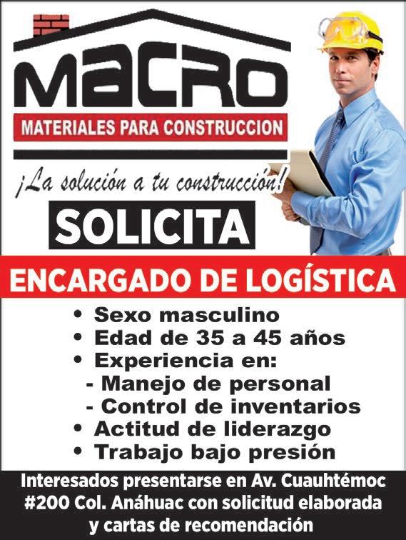 EMPRESA TRANSPORTISTA SOLICITA MECÁNICO CON EXPERIENCIA EN TRÁILER, EN COMPRAS, INFORMES AL: 866-639-25-44. CORREO: adrianarauquel@hotmail. com (58477 : 16-Sep : 25-Sep)
