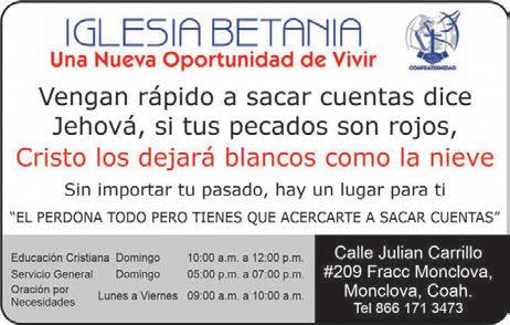 Domingo 23 de julio de 2023 | Año XXIV | Número 9054 | 6 secciones | www.zocalo.com.mx 10 PESOS @PeriodicoZocalo Periodico Zócalo zocalomonclova El clima en la región Hoy MÁX 38° MIN 25° VOLARÁ CON AVIONES DE 9 PASAJEROS