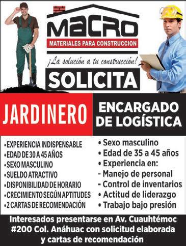 Solicito Ayudante General, Hombre o Mujer, Edad de 25 a 40 años, no se requiere experiencía. Informes 866-632-18-16. (58277 : 07-Jun : 05-Aug)