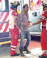 z Paramédicos atendían a don José de las heridas que presentaba en los brazos.
