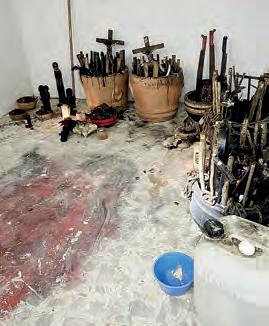 Biker jacket roja con acento mexicano Una chamarra de vibrante color rojo de Josefina by Vero Solis impactó en el escenario durante el segundo show de “Las mujeres ya no lloran” en la CDMX. Shakira lució una biker jacket de piel con elementos similares a los de la pieza anterior: Sagrado Corazón, Virgen de Guadalupe y cruces. Destacan los cristales de color rojo que aportan un brillo único en combinación con el dorado. La cantante vistió esta pieza con un chaleco de piel