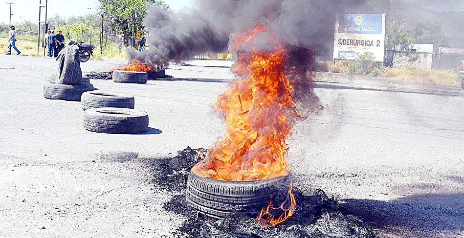 Mientras tanto sigue el bloqueo en todos los accesos de la Siderúrgica 2. Durante el día, los quemaron llantas y colocaron piedras de gran tamaño para bloquear la avenida Industrial en su intersección con calle Huémac, evitando el paso del tráfico como medida de presión para que la empresa les pague las ocho semanas de sueldo y prestaciones que les adeuda.