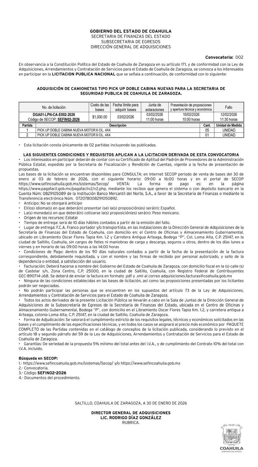 27 DE FEBRERO Se recibirán las posturas finales que definirá la adjudicación.