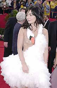 La cantante islandesa, Björk, sorprendió a todos a su llegada a la ceremonia de los Óscar de 2001, pues llegó con un vestido de cisne, creada por Marjan Pejosi.