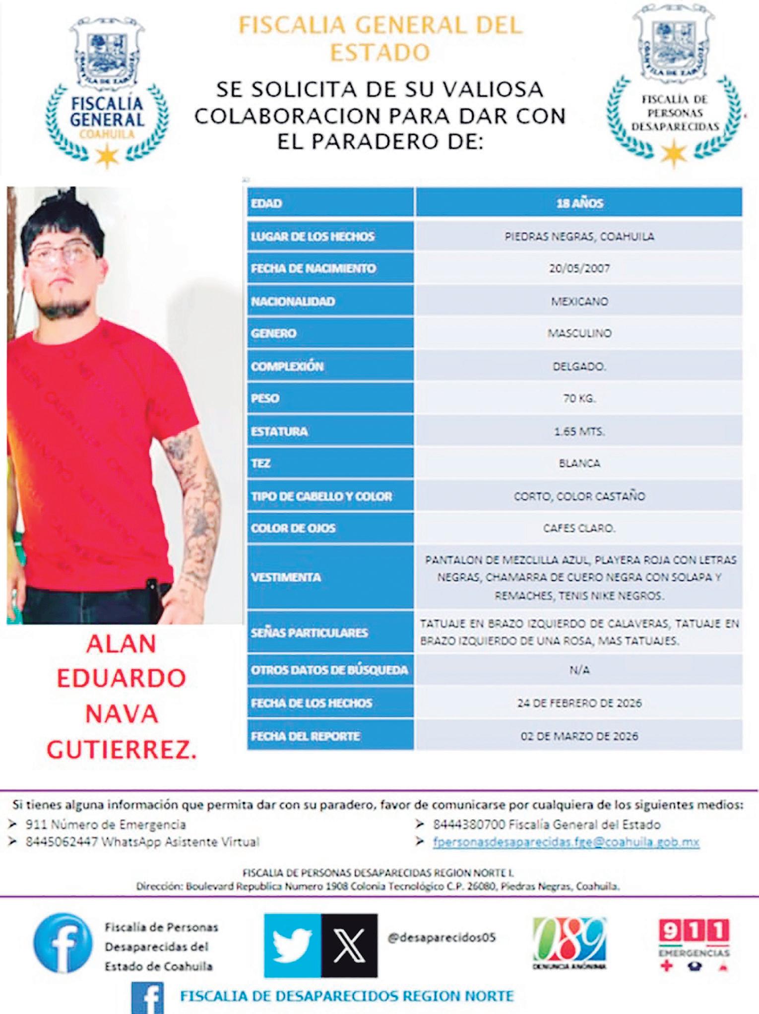 Lesionados z Isaac Emanuel Gutiérrez Burciaga, de 18 años de edad. z Sergio Gabriel de la Rosa, de 18 años.