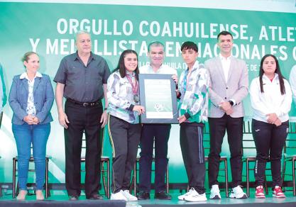 “Hoy estamos aquí dando reconocimiento a las y los atletas que con ejemplo de alto rendimiento, hoy me permiten a mí tener gobernabilidad y equilibrio”, mencionó el gobernador Miguel Ángel Riquelme Solís durante la ceremonia en la que se entregaron reconocimientos a atletas medallistas de Nacionales Conade 2023, Juegos Nacionales Populares 2023 y Juegos Centroamericanos y del Caribe 2023. “Todos los atletas reciben el reconocimiento del Pueblo y del Gobierno de Coahuila; queremos destacar el trabajo, la preparación, el esfuerzo, la disciplina y los resultados que obtuvieron”, expresó el mandatario estatal. Durante la administración