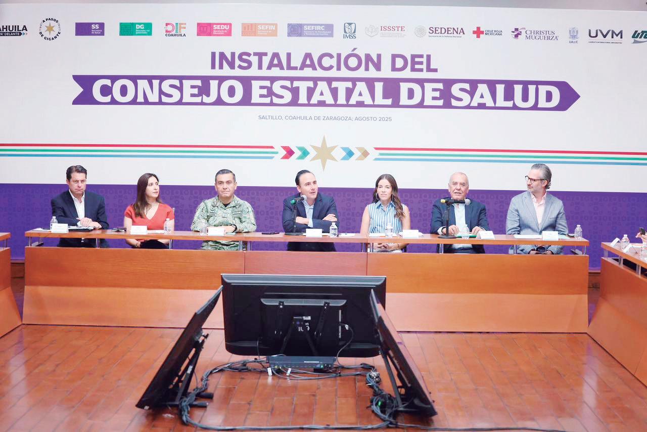 El Consejo Estatal de Salud de Coahuila coadyuvará a fortalecer las acciones comunitarias, desarrollar entornos saludables y ofrecer un mayor impulso al gran programa de Salud Popular, lo que permitirá seguir diseñando políticas públicas y reforzar las acciones implementadas en temas de alta relevancia en materia de salud pública.