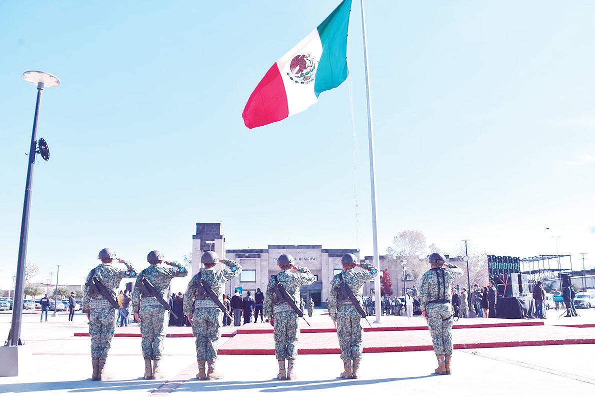 Autoridades civiles, militares y educativas participaron en ceremonia cívica este 5 de febrero para conmemorar un aniversario más de la Constitución Política de los Estados Unidos Mexicanos de 1917, donde destacó la presencia del Comandante del 14 Regimiento de Caballería Motorizado de Múzquiz, coronel Hugo Horacio Verdejo Salcedo, así como el secretario del ayuntamiento en representación de la alcaldesa, Laura Jiménez Gutiérrez. Los honores a la Bandera estuvieron a cargo de la escolta y banda de guerra del 14 Regimiento de Caballería