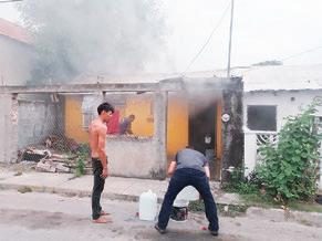 incendio registrado en el interior de un domicilio de la colonia Comercial en la villa de Agujita, lo que generó una fuerte movilización de cuer-