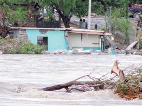 y tráileres quedaran varados. En Nueva Rosita, los puen- tes Álamos y Sabinitos desaparecieron con la fuerza del agua, sin que se pudiera transitar por esta importante vía estatal que conecta a la región, al igual que el “vado” en Sabinas.
