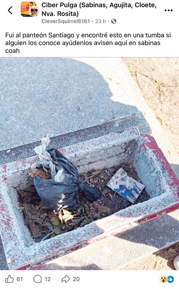 sona que aparece en la fotografía para que se comunique con él y le haga saber la noticia. La imagen muestra a una mujer, y se presume que el ‘trabajo de brujería’ está dirigido a ella. Éste no es el primer caso de este tipo que se registra en el panteón Santiago, ya que los panteoneros han reportado el ingreso de personas extrañas durante la madrugada, lo que ha generado preocupación entre los familiares de los difuntos.