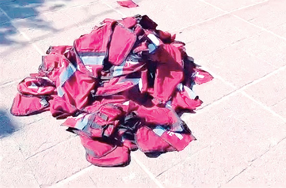 Rompen chalecos z Una decena de chalecos en color guinda, apilados y rotos sobre la plancha de la plaza central simboliza la fiesta y repudio que continúan en el Pueblo Mágico de Tequila, a un día de que fuera aprehendido su alcalde.