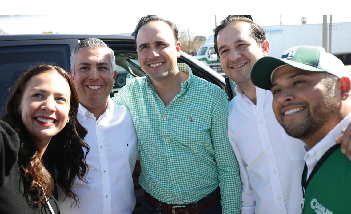 En esta visita de Manolo a Piedras Negras se vio un equipo fuerte, echado Pa’ Delante junto con Memo Ruiz estuvo también la subsecretaria de Gobierno, Sonia Villarreal: Marco Antonio Saldaña, coordinador municipal de Mejora Coahuila y Nicanor Moyeda…