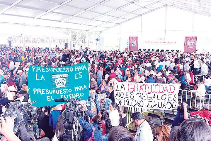 “En México, en seis años, salieron de la pobreza 13.5 millones de mexicanas y de mexicanos, histórico”, agregó en el Pabellón Don Vasco, un auditorio circular de piso de arena.