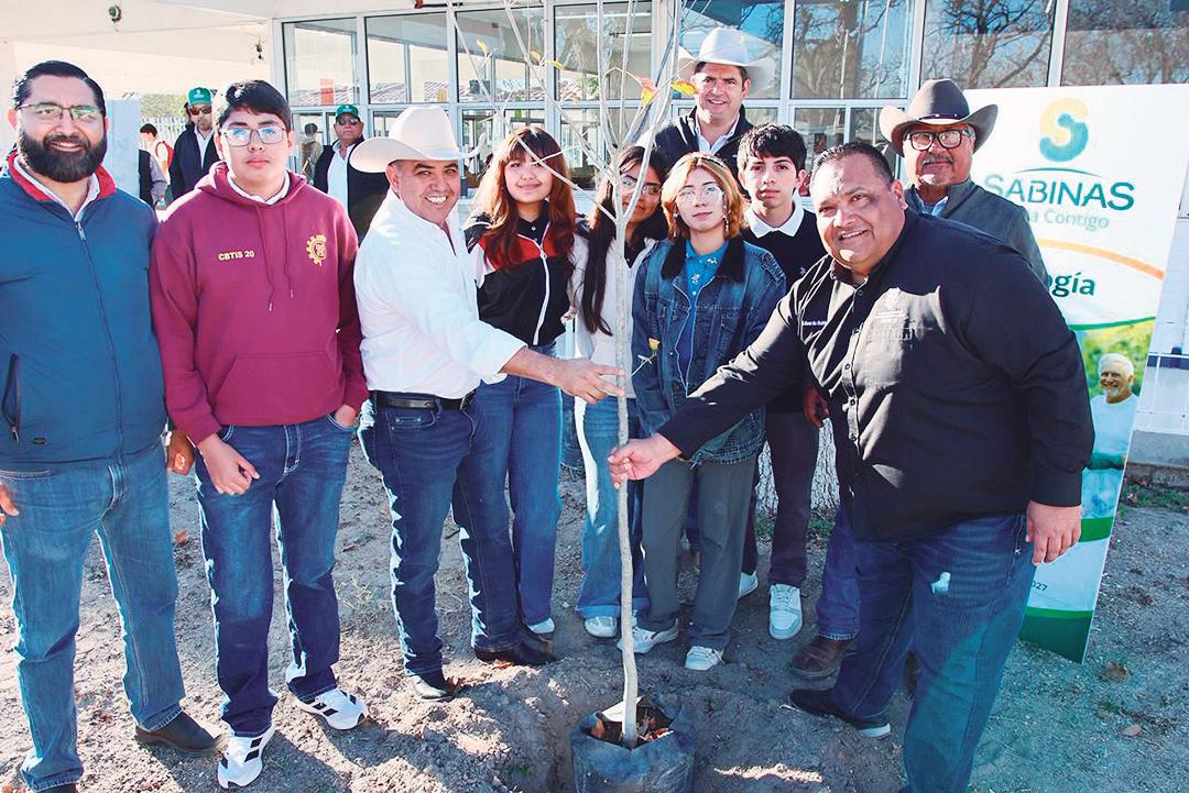siembra simbólica de un árbol, acompañada de un mensaje de concientización ambiental dirigido a los jóvenes, promoviendo el cuidado del entorno.