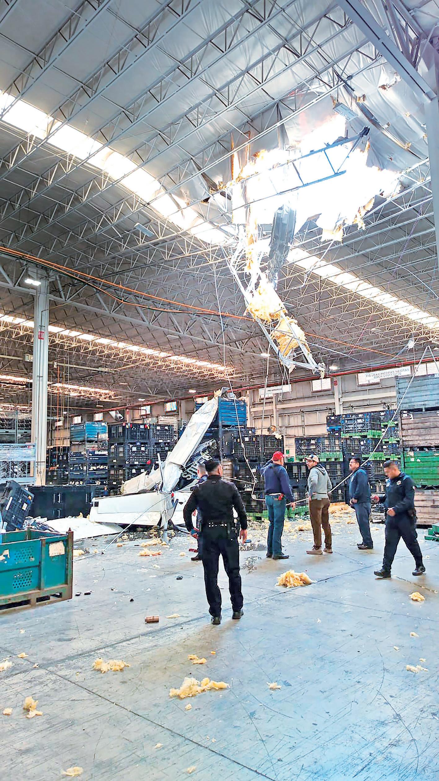 Avioneta de Armando López Recio se desploma y cae sobre el techo de una nave industrial que sirvió para amortiguar el impacto