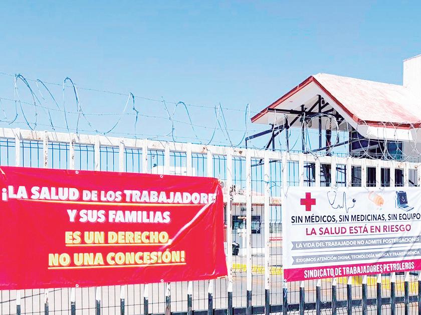 El Sindicato de Trabajadores de Petróleos Mexicanos se levantó en protesta colocando mantas al exterior de la subestación ubicada en este municipio, para solicitar una de las prestaciones más importantes de los empleados, la de atención médica para ellos y sus familiares.