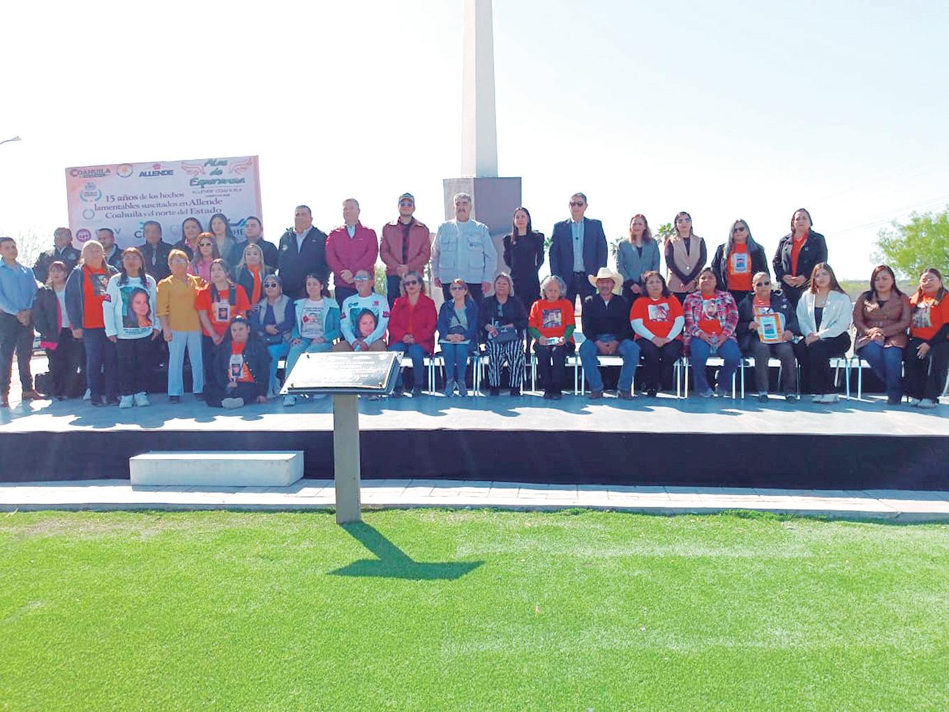 A 15 años de la tragedia, de la masacre de Allende y otros municipios de la zona norte de Coahuila, familias, colectivos y autoridades se reunieron en Allende para exigir que la verdad se mantenga viva. El evento fue encabezado por el alcalde Ricardo Treviño Guevara; en representación del gobernador Manolo Jiménez Salinas estuvo Jafia Pacheco Valtierra, titular de Derechos Humanos del Gobierno del Estado; del colectivo Alas de Esperanza la señora Olga Saucedo; el fiscal de Personas Desaparecidas, José Ángel Herrera, entre otras personalidades.
