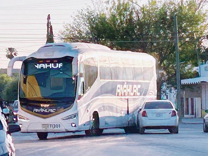Durante las 18:00 horas del martes, elementos de Vialidad y Tránsito municipal fueron requeridos en el cruce de avenidas Abasolo e Ignacio Zaragoza, donde se registró un choque entre un autobús de la línea Anáhuac y un vehículo tipo Sedan en color blanco. El percance ocurrió cuando el conductor del camión de pasajeros ingresó a la avenida Abasolo y al hacerlo con una maniobra impactó el vehículo que quedó atrapado entre la unidad. Al lugar se movilizó una unidad de la Policía municipal, quienes tomaron conocimiento del hecho y realizaron el remolque de ambas unidades hasta el corralón municipal.