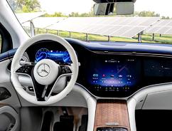 El máximo lujo de MercedesBenz para la categoría de SUV se refleja en EQS. Esta camioneta cero emisiones brinda un recorri do eléctrico de hasta 630 km y una potencia de 544 hp. Por dentro se colocó el sis tema MBUX que se compone de un visualizador central OLED de 12.8 pulgadas y uno más para el conductor de 12.3 pulgadas. Tam bién agrega realidad aumentada para navegación. El sistema de sonido 3D está firmado por Burmester y ofrece iluminación ambiental de hasta 64 colores.