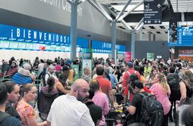 z Enormes filas se pueden ver en el aeropuerto, sobre todo por las mañanas, ante la desesperación de cientos de personas.