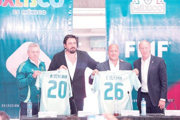 z Javier Aguirre, Amaury Vergara, Enrique Alfaro e Ivar Sisniega, en la presentación del partido.