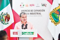 El gobernador Miguel Ángel Riquelme Solís, acompañado por el alcalde de Mata- moros, Miguel Ángel Ramírez López, anunció la expansión de la empresa Exa Industrial, la cual invertirá 56 millones de dólares en el proyecto, evento donde destacó que el equilibro entre los tres poderes ha permitido avanzar a la entidad.