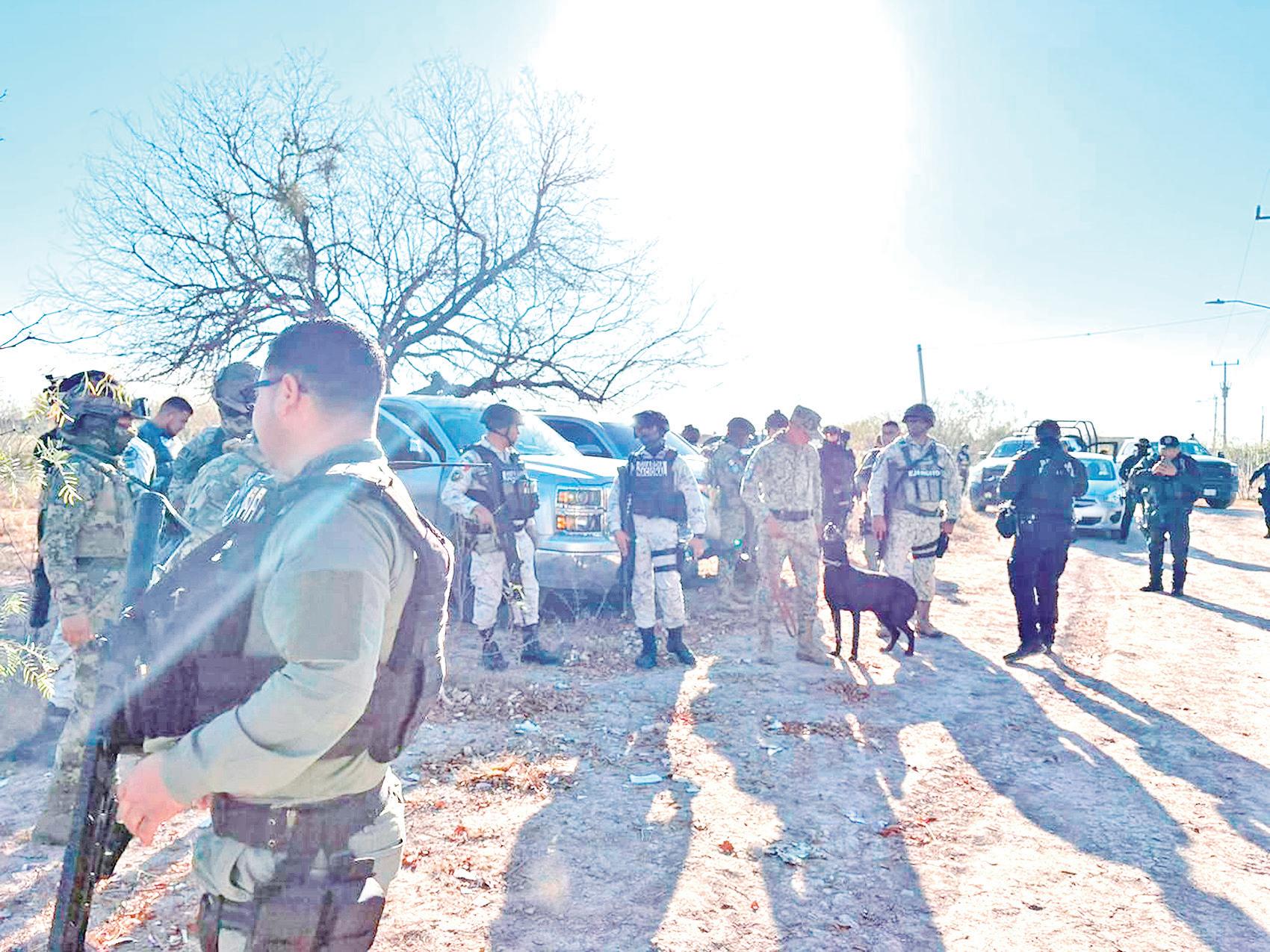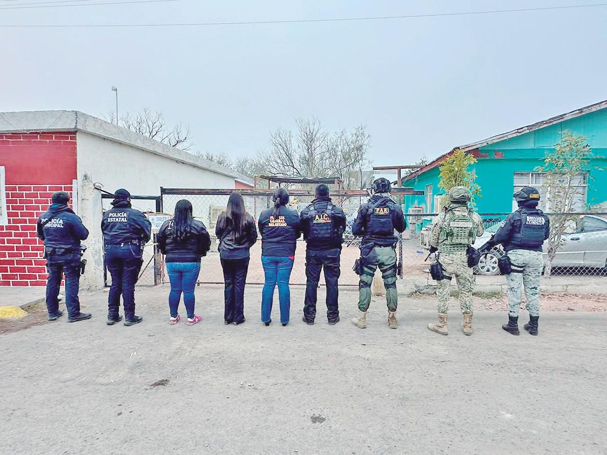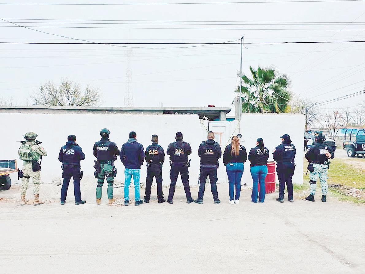 El despliegue policiaco estuvo encabezado por la Fiscalía, quienes fueron apoyados por elementos de la Guardia Nacional, Sedena y Policía Estatal, quienes dieron seguridad perimetral mientras el