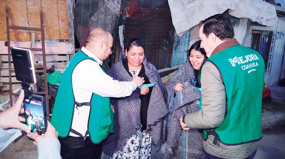 Asimismo, en sectores como la colonia Periodistas, 24 de Agosto, Gobernadores y Cumbres, integrantes del programa Mejora Coahuila y su coordinador regional, Franco González y el diputado local Guillermo Ruiz, entregaron café, cobertores y vales de gas.