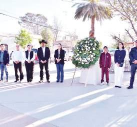 presidenta honoraria del DIF municipal, Carmina Cárdenas Cárdenas; en representación del alcalde, Iván Ochoa Rodríguez, asistió el regidor profesor Fernando Paredes Blanco; además del teniente de Caballería Juan Jesús Ortiz, del 12vo Regimiento de Caballería. También estuvieron presentes el comandante Pablo Moreno, subdirector de Seguri- dad Pública; Noelia Ángeles Moreno, regidora comisionada en Actos Cívicos; el niño Ángel Riojas Zamarrón, alcalde infantil 2025; así como los regidores Claudia Vega, María de Jesús Álvarez, Óscar Duarte y Fidel Coronel. A la ceremonia se sumaron Alma Elizabeth Ibarra, representante de Programas Federales en el municipio, y el profesor Armando Lozano, director del plantel anfitrión.