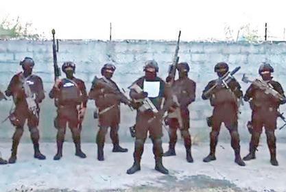 En el mensaje, nueve personas fuertemente armadas y que vestían uniformes tipo militar, aparecen a cuadro mientras uno de ellos lee un comunicado.