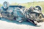 Una conductora de Piedras Negras que retornaba de un viaje a Monterrey, sufrió un accidente en la carretera 57 en donde destrozó su auto compacto.