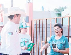 La candidata a la presidencia de Nava, María del Pilar Valenzuela Gallardo, realizó un recorrido para presentar sus propuestas en las colonias Las Torres, Independencia y Napoleón Gómez recibiendo una buena respuesta de los ciudadanos que aprovecharon la oportunidad para exponerle solicitudes. Pily Valenzuela destacó que cuenta con excelentes propuestas para dar continuidad a la transformación y progreso en todo el municipio de Nava. Agregó que en los dos años y cinco meses transcurridos se ha podido impul-