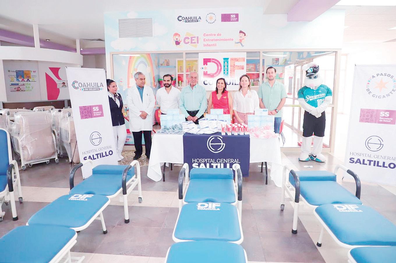 ble sin la suma de voluntades de la sociedad civil, la iniciativa privada y nuestros equipos de béisbol, que con gran generosidad hicieron suyo este proyecto”, destacó. Durante la entrega estuvieron presentes Eliud Aguirre Vázquez, secretario de Salud; Raúl Rodríguez Sánchez, subsecretario de Atención en Salud; Ivonne Espinosa Torres, directora de Programas Sociales del DIF Coahuila; Juan Martín de León Montelongo, director del Hospital General de Saltillo; y Diego Montemayor, representante del Club Saraperos de Saltillo.