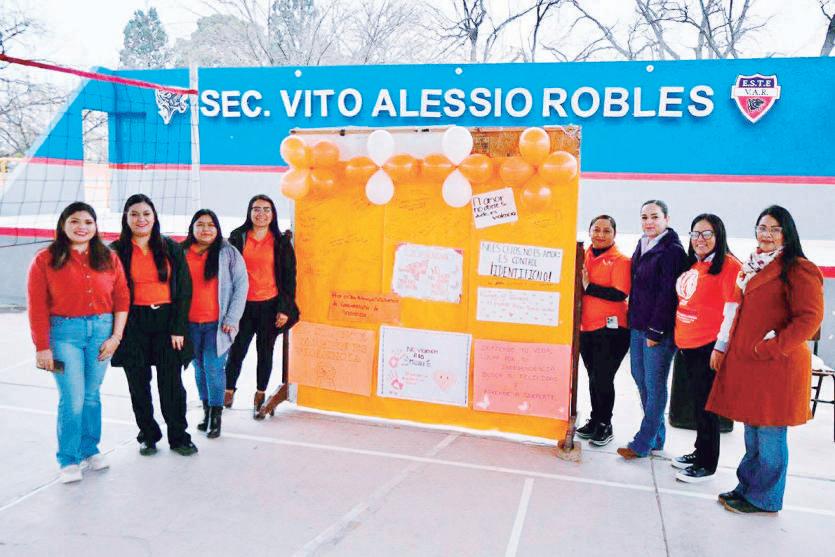 En el marco del Día Naranja, la Instancia de la Mujer, encabezada por la Brenda Berenice Calzoncit Nájera, directora de la Instancia de la Mujer, en coordinación con Carmina Cárdenas Cárdenas, presidenta honoraria del DIF Municipal, y la directora Iracema Rodríguez, impartieron una plática informativa sobre el Violentómetro a las y los estudiantes de la secundaria Vito Alessio Robles. La primera dama de Nava; Carmina Cárdenas detalló que en esta actividad participaron Jocelyn Mosqueda Martínez, Yoselin Karina Cruz Gómez y Yuridia Azeneth Fraga Romo.