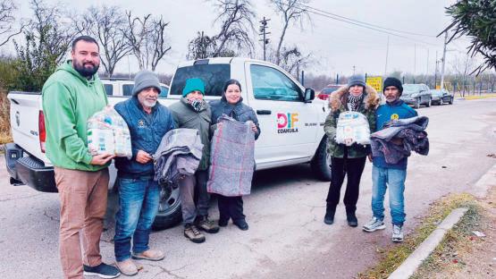González, sostuvo el pasado jueves una reunión virtual de coordinación con los 38 municipios del estado, en la que participaron algunos alcaldes, secretarias y secretarios de Ayuntamiento y directoras y directores de Protección Civil municipal, en la que se refrendó la coordinación permanente del Gobierno de Coahuila, instancias federales, el Ejército Mexicano, la Guardia Nacional, así como la Policía Estatal, para atender de manera oportuna cualquier contingencia. Asimismo personal del DIF Coahuila por instrucciones de la presidenta honoraria del DIF Coahuila, Liliana Salinas Valdés, desplegaron una brigada invernal en diferentes colonias de la ciudad, con el objetivo de entregar cobijas, despensas y vales de gas, apoyos que permiten a las familias contar con mejores condiciones para enfrentar el descenso de la temperatura y cubrir sus necesidades básicas.
