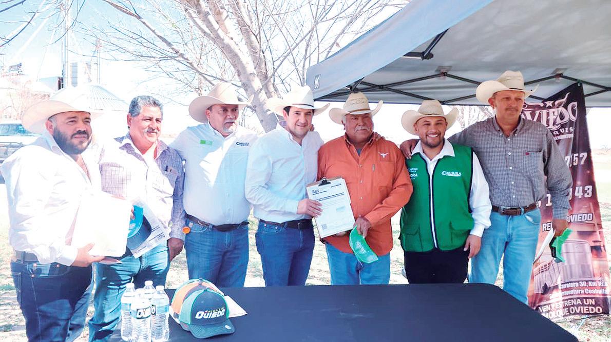 Durante el evento estuvo acompañado por el alcalde de Guerrero, Mario Cedillo; el diputado Guillermo Ruiz; así como delegados de Mejora Coahuila, quienes refrendaron el compromiso de trabajar en coordinación para fortalecer al campo de la región.