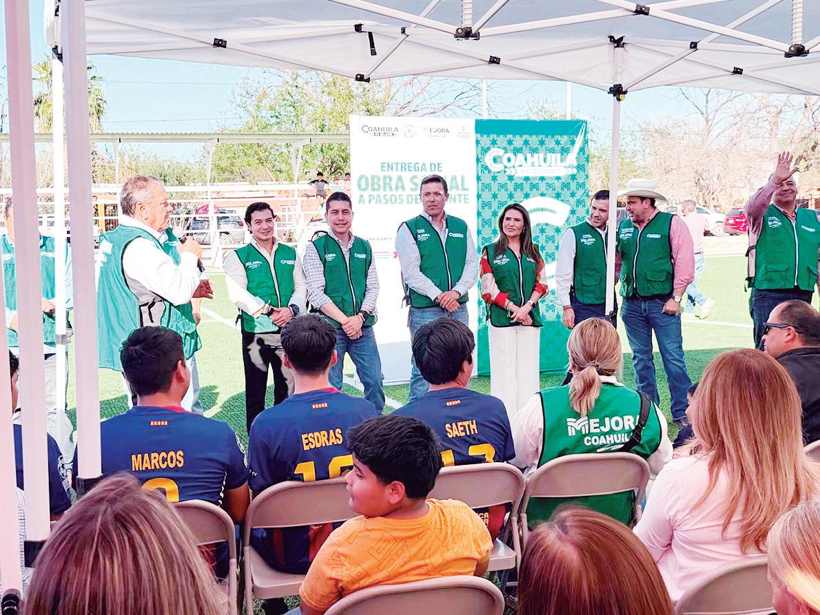 Un paquete de obras por más de 60 millones de pesos fue el que entregó ayer el gobernador Manolo Jiménez Salinas en el municipio de Múzquiz, el gobernador volvió por segunda ocasión en menos de 4 días a la Carbonífera, esta ocasión para acompañar a la alcaldesa Laura Jiménez en la entrega de obras de pavimentación, agua potable e infraestructura educativa… Acompañado de Gabriel Elizondo, titular de Mejora Coahuila, el gobernador ha beneficiado con obras de alto impacto a la ciudadanía de la Carbonífera, además ha reconocido el trabajo de la alcaldesa Laura Jiménez, con quien se ha logrado eliminar el rezago que se heredó de la anterior administración…