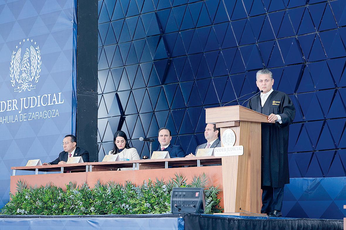 Ha iniciado una nueva etapa para la impartición de justicia en Coahuila. La puesta en funcionamiento de la Ciudad Judicial va más allá de la inauguración de un moderno y eficiente inmueble, conlleva la aplicación de sistemas y estrategias para que la atención sea más rápida y precisa, con ahorros de tiempos y trámites. Durante el Informe de Actividades del magistrado presidente, Miguel Felipe Mery Ayup, se destacó que este nuevo modelo brindará una atención más personalizada, humana y profesional. Se tendrá la capacidad de atender a mil personas al día de forma organizada, con horarios extendidos y con servicios especializados.