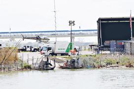 z Elementos del Departamento de Seguridad Pública de Texas instalan medidas de seguridad y el operativo para recibir al expresidente y al gobernador Greg Abbott este jueves.