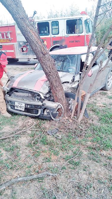 Una joven fue trasladada de urgencia con fractura en una de sus piernas y con riesgo por su avanzado estado de embarazo, tras estrellar su auto compacto Mini Cooper contra un árbol en la carretera 57 tramo Morelos-Los Álamos.