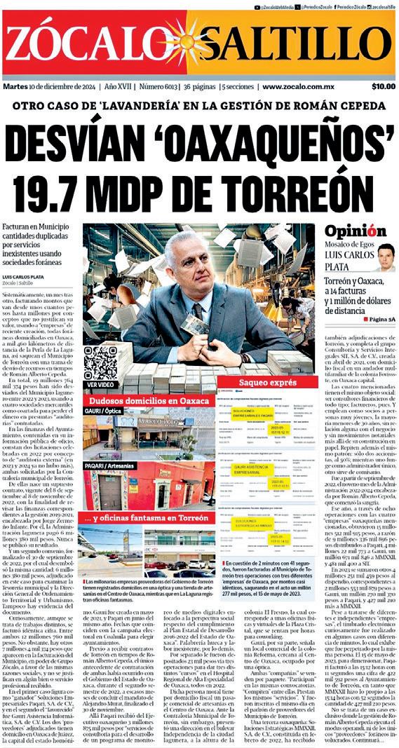 de Torreón no existe ningún antecedente de adjudicación directa o licitación pública de algún bien o servicio con el referido “proveedor” yucate co; eso sí, este se halla inscri to en el padrón municipal de proveedores desde junio 2022, a fin de vender “diseño y desa rrollo de sistema de informa ción para la gestión de datos catastrales”.