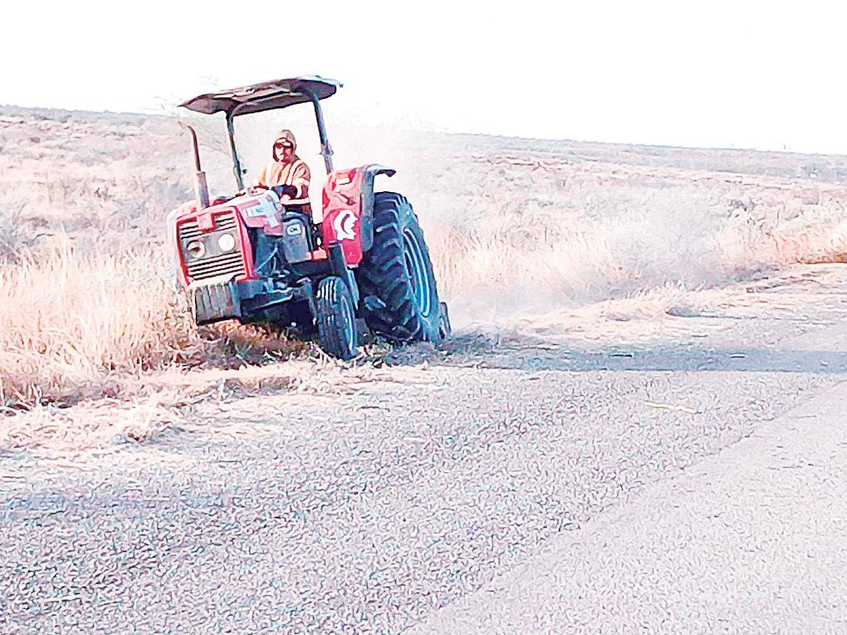 Retiran la maleza de carretera estatal 2