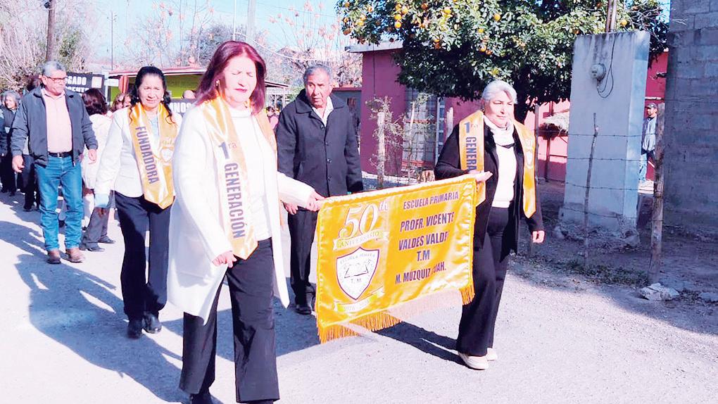 z Con desfile conmemorativo autoridades educativas, maestros, alumnos, exalumnos y exmaestros, así como padres de familia festejaron este jueves el 50 aniversario de la fundación de la escuela Vicente Valdez Valdez, en Múzquiz.