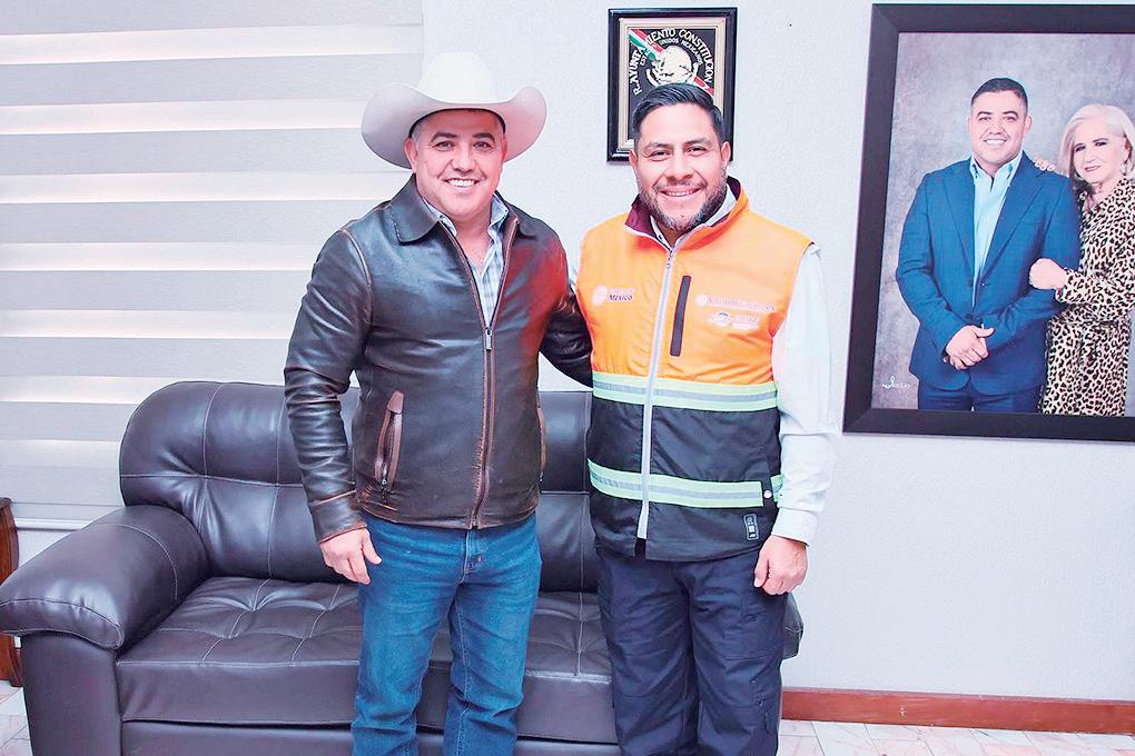 z José Feliciano ‘Chano’ Díaz, alcalde de Sabinas, junto al delegado de la SCT.