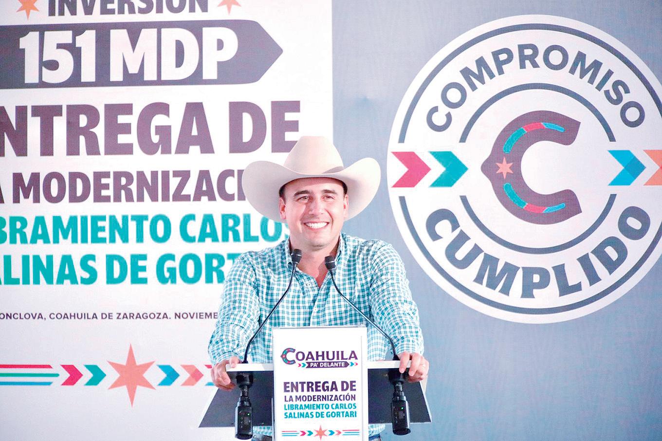 “En las próximas sema nas estaremos anunciando la construcción de varias megaobras, con una inversión de miles de millones de pesos para el tramo de la carretera 57 en Coahuila, que es muy importante y que va a fortalecer nuestra competitividad y el desarrollo de nuestro estado”.