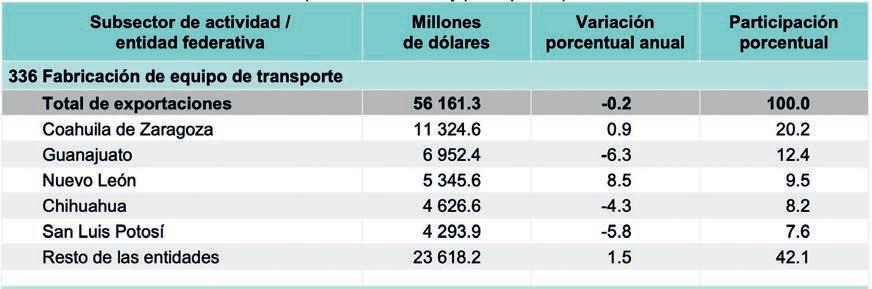 monto promedio anual de las exportaciones de autopartes de México a EU