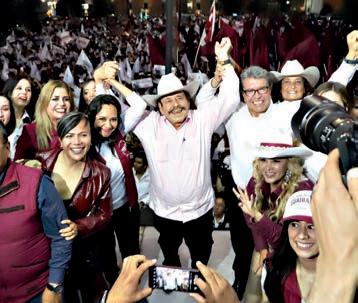 ‘Voto masivo’ También en la capital coahuilense, el morenista Armando Guadiana concluyó sus dos meses de campaña con un mitin en la Plaza Coahuila, en el centro de la ciudad, que terminó con un baile con el grupo Kumbia Kings. Como invitados especiales, Guadiana Tijerina contó con la presencia del coordinador de los senadores de Morena, Ricardo Monreal, así como otros senadores y diputados federales, y en el evento estuvieron los candidatos a diputados locales de la región.