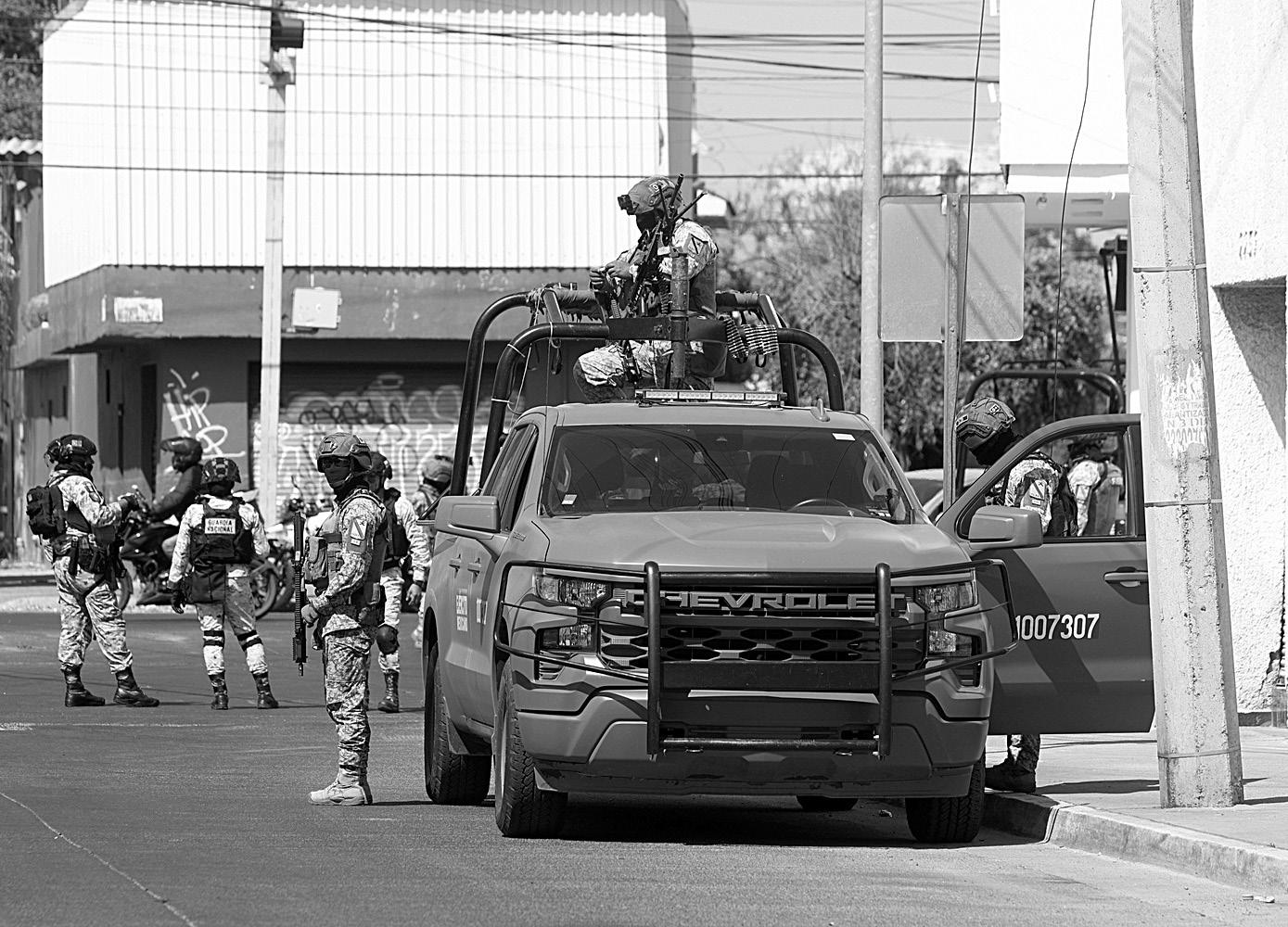 Sumado a esto, la mañana de ayer volvió a mostrarse atípica ante el despliegue notable tanto de elementos del Ejército Mexicano como de la Guardia Nacional en la funeraria La Paz, ubicada en la colonia San Andrés, en Guadalajara, y nuevamente en el panteón ubicado en las avenidas Santa Margarita y Aviación. En esta ocasión, los oficiales federales realizaron dos retenes en el camposanto: uno en el acceso de las salas de velación y otro en la entrada general de vehículos y peatones. En la puerta principal, sobre Avenida Aviación, los uniformados revisaban el interior y la cajuela de cada automóvil que ingresaba. Mientras tanto, en el Municipio de Guadalajara, las policías Municipal y Estatal fueron alertadas por el reporte de ponchallantas que afectaron tres vehículos, además de que uno de estos presentó dos impactos de arma de fuego en el cristal del conductor.