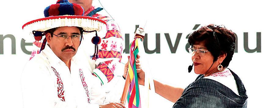 a Morena o a López Obrador, recibieron los botones de mando indígena, previo a la instalación formal, ocurrida anoche.